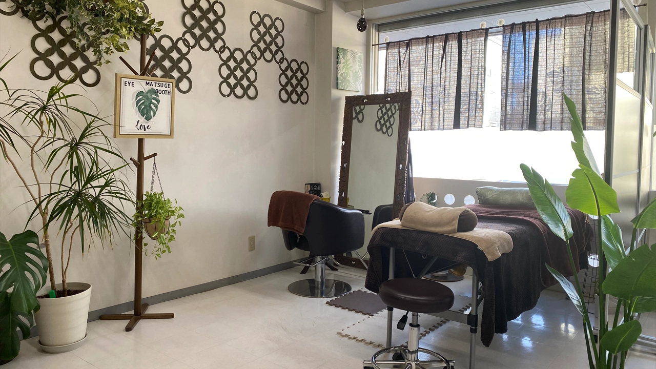 完全貸切の落ち着いた空間で、まつげパーマ・カット・カラー・トリートメントまで幅広く対応。